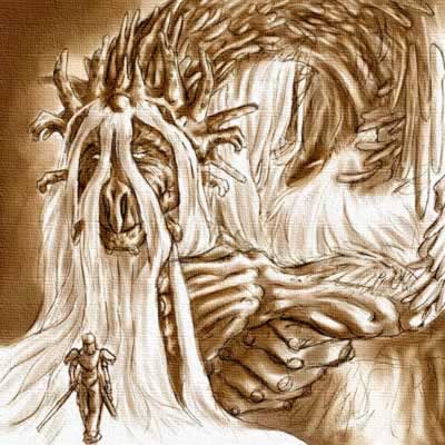 完全に闇の者にならないうちに命を絶たなければならなかった。シモンは彼らの住居へ行く途中に広がるマグマの海の炎を利用し、己の剣技に乗せてその炎を住居地に放った。地龍の怒りとも言われるその炎は、彼らの魂を闇から救ったはずである。・・・この世での命とひきかえに。