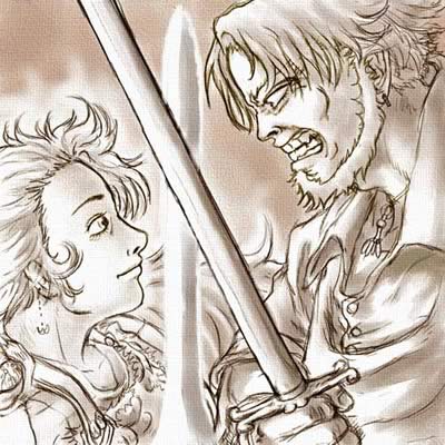 お互いの剣を見せあい、そして、2人はため息と共に見つめ合う。