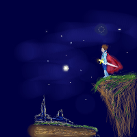「げ・・・・山一つ間違っちまった・・・。」 目標を目の前にして、ラードはそこで野宿し、翌日、再び鬱そうと木々の茂る盛りへと入っていった。 そして、その数日後、なんとか炎龍の神殿にたどりつき、闇龍の一部を封印した龍玉を納めると、大陸を南下し、シゼリアへ船が出る港町へとラードの旅は順調に進んでいた。 −キィ〜〜− 夜遅く街へついたラードは、宿代わりに24時間営業の酒場へとやってきた。 少し軋みながら開いた戸の隙間から、店内が見えてくる。薄暗いそこには、バラバラにテーブルについた数人の客と、カウンターにやせた店主がいた。 「いらっしゃい。」 「スコッチ。ストレートでいい。」 「ほいよ。」 愛想のいい店主は、にこにこ顔でカウンターに座ったラードに話しかけてきた。 「こんな遅く街に着いたんですか?」 「ああ。」 どさっと床に置いたラードの荷物を見て店主はそれを推測する。 「それはまた急ぎの旅でも?」 「まーな。」 「明日の船は、もう満席らしいですよ。」 「そうなのか?」 出されたスコッチを一口喉に流し込んでから、ラードは店主の顔を見て聞く。 「・・・キャンセルってのもあるだろ?」 「さー、どうでしょうねー?ある時はありますがねー・・・・」 そして、はっとした顔で店主はラードを指さす。 「さっきからどこかで見た顔だと思ってたんですが・・・ひょっとして、お客さん、以前歌姫と一緒だった・・?・・・」 ぽりぽりと頭をかいてしばし考える店主。 「そうだ!思い出した!確か、用心棒兼ナイフ投げをしてた兄さんじゃ?」 「あ?・・・あ、ああ・・・」 この街での興行は1夜だけだったが、熱烈大歓迎を受けたことをラードは思い出しながら、苦笑いをして答える。 「で?兄さん一人なんですか?歌姫ミルフィーは・・一緒じゃないんですか?」 「あ、ああ・・・まーな・・ちょっといろいろあって・・・。」 「どこかで貴族様か大商人か誰かに?」 にやっと意味有りの笑みを浮かべ、店主は小声で言った。 「あ・・・・まー・・そんなところ・・かなあ?」 「で、歌姫一座は解散。兄さんは一人シゼリアに帰るというわけですか?」 「うーーん・・そういうこと・・かな?」 ラードは適当に店主の話に合わせていた。 「で、そのミルフィーという歌姫は今どこにいる?」 「ん?」 背後から男の声がし、ラードは振り返った。 いかにも剣士、いや、洗練された騎士であるという風情の男が一人、険しい表情でラードを睨んでいた。 「あんたは?ミルフィーとどういう関係なんだ?」 男の誘発に乗るべきじゃない、とは思ったが、他のことならまだしもミルフィーの事。ラードは無意識にその男に鋭い眼光を返していた。単なるファン故にミルフィーの所在を聞いたとは、男の雰囲気から言い難いと感じたからでもあった。 「あ・・すまん。いきなり失礼した。」 ほんの数秒二人とも軽くにらみ合うような状態だった。が、それは、ミルフィーの事を聞いた男が非礼を詫びたことで中断された。 横に座ってもいいか、という伺いを男の態度から悟ったラードは、やはり無言のままあごでカウンターを指し、それを許可する。 −ゴト− カウンターに座り、すぐ横に携帯していた剣を抜いて立てかける。ラードは思わずその剣をみていた。職業病といったらいいのか・・自然とそういったものには目がいく。それなりのものであると感じれば、なおさらである。男のその獲物は、確かに神龍の剣と比べれば落ちるが、それでもこの世に二つとしてないだろうと思わせるものだとラードは感じた。 「オレは、カルロス・アシューバル。・・・貴公が知っているミルフィーがオレの知っている彼女と同じならば、教えてもらいたい。」 (カルロス・・・どこかで聞いたような名前・・だよな・・・カル・・ロス・・・・) つい今し方とはうってかわって、好感的な笑顔で自己紹介するその男に、ラードは悪人ではなさそうだと感じながら、男の名前を反芻する。 (・・・カルロス・・カ・・ル・・・・) そして、はた!と思いつく。 「カルロス?!カルロスって・・ミルフィーが時々こぼしてた奴?」 ガタン!、とイスを蹴るようにして立ち上がり、ラードは思わずカルロスを指さしていた。 「は?・・い、今・・・なんと言った?」 そして、その男、カルロスもその思いがけないラードの言葉に驚いて目を丸くする。 「あ・・だからさ・・ミルフィーが、時々、カルロスっていう男の名前を口にしてたんだよ・・・ほんの時々だけど・・・・あ、あんたが、そのカルロスか?」 「ミルフィーが・・オレの・・名を・・・・?」 冒険の仲間としてならまだしも、男としては自分は嫌われ、だからこそミルフィーは一人この異世界へ旅だったものだと思いこんでいたカルロスの目は、ラードの言葉で輝く。 「だけど、あんたがそのカルロスかどうかは・・証拠はないよな?」 「あ、ああ・・・。」 ふと気づいたことをラードは口にした。再び男に少し鋭い視線を投げかけながら。 「オ